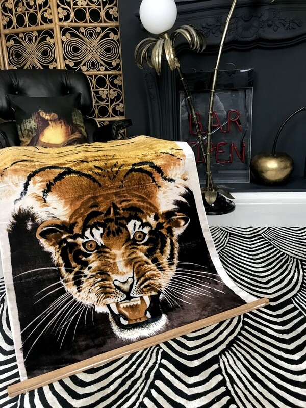 Mid Century Super Silk Velvet Wall Hanging Bengal Tiger Fabric Panel